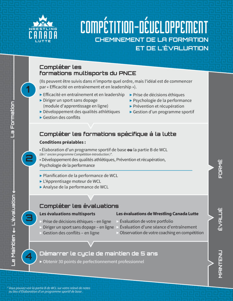 Voici le cheminement complet de formation et d’évaluation pour le programme Compétition – Développement :
